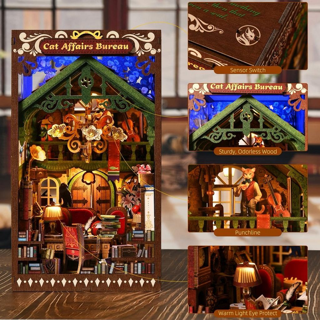 2Kids Toys 3D skládačka Zarážka na knihy Miniatura domečku Úřad pro záležitosti koček