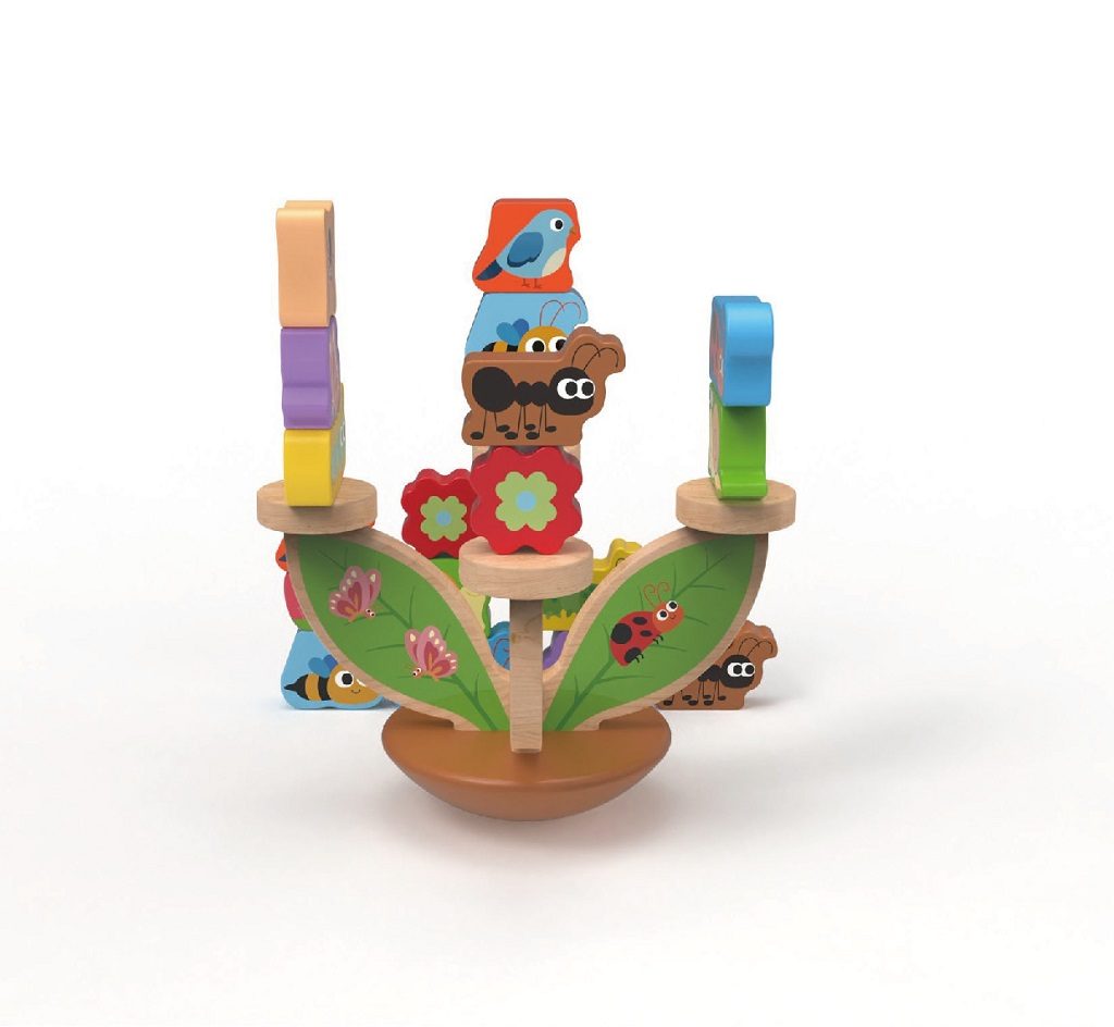 S touto 21dílnou balanční hrou si děti užijí mnoho zábavy. Hra obsahuje balanční kámen se čtyřmi listy a pestrobarevné dřevěné tvary v různých velikostech s ilustrací zvířátek a květin, které můžete zahlédnout na každé louce. Představte si, že Vy jste malé zvířátko s velkým úkolem, jak správně vyvážit louku. Co nejšikovněji rozmístěte na strany tvary tak, aby se všechny vešly na louku, ale pozor na správné vybalancování listů, ať Vám to nespadne! Tuto hru můžete hrát také s rodinou či kamarády. Střídejte se po jednom ve stohování tvarů na listy. Vyhrává ten, kdo umístí poslední zvířátko či květinu tak, aby nespadly všechny ostatní. Pokud nebude louka správně vybalancovaná a tvary z něj spadnou, můžete začínat znovu a znovu. Pevné nervy! Hlavní vlastnosti: pestrobarevné tvaryvyrobeno ze dřevarozvíjí motoriku a logické myšlenítrénuje trpělivost