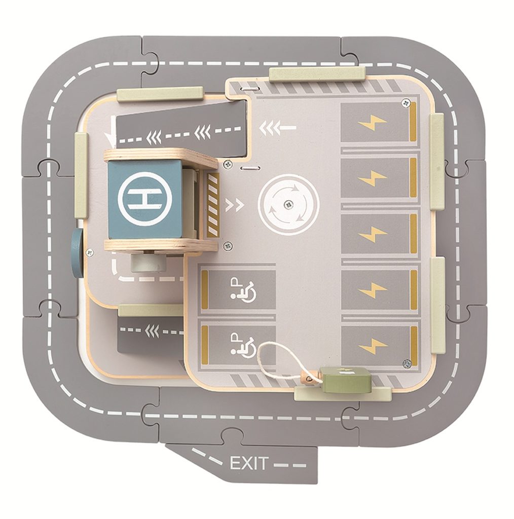 Všem automobilovým nadšencům se rozzáří oči, až uvidí garáž se silnicí, výtahem a heliportem. Umístěte dopravní značky, připravte svá autíčka a hra může začít. Umyjte svůj vůz v auto-myčce. Natankujte pohonné hmoty u stojanu v přízemí. Máte elektro auto? Žádný problém, vyvezte svůj vůz pomocí výtahu a připojte ho k nabíječce ve druhém patře. Baterie je plná? Tak můžete vyrazit. Stala se nehoda? Z heliportu na střeše už startuje vrtulník. Tato edukativní hračka motivuje děti ke kreativní a představivé hře. Rozvíjí koordinaci ruka-oko, jemnou motoriku a zručnost. Garáž s parkovacími plochami na třech úrovních obsahuje také silnici, 4 autíčka, helikoptéru a 3 dopravní značky. Hlavní vlastnosti: 3 podlažígaráž se silnicí, heliportem a výtahem, 4 autíčka, auto-myčka, 2 tankovací stojany (z toho 1 elektro), vrtulník, 3 dopravní značkyinspiruje ke kreativní a představivé hřerozvíjí koordinaci ruka-oko, jemnou motoriku a zručnostvhodné pro děti od 3 let