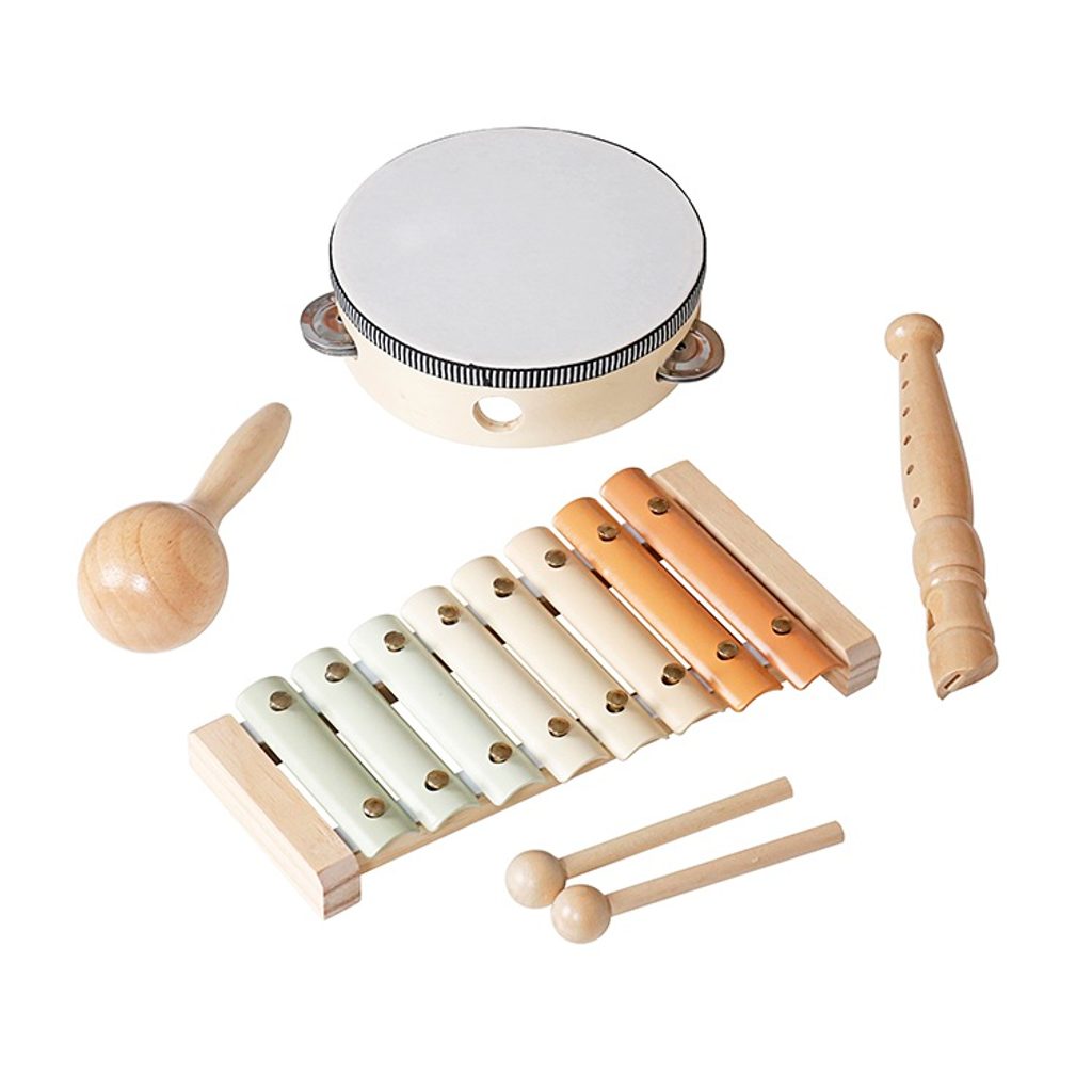Objevte kouzlo hudby s dětskou hudební sadou 4 v 1, která seznámí děti s prvními tóny a rytmem. Obsahuje tamburínu, rumba kouli, flétnu a xylofon, takže nabízí široké spektrum zvuků a melodií. Hračky jsou vyrobeny z kvalitního přírodního dřeva, které je doplněno jemnými pastelovými barvami. Vydávají krásné zvuky a rozvíjejí vztah k hudbě, ale nejsou to profesionální hudební nástroje. Nejsou dokonale naladěné, slouží především k zábavě. Sada podporuje rozvoj jemné motoriky, koordinace pohybů, hudebního sluchu a rytmického cítění, a stává se tak ideálním společníkem pro první hudební krůčky. Obsah balení: tamburínaxylofonrumba kouleflétna2x palička Hlavní vlastnosti: hudební sada 4 v 1 rozvíjí rytmické cítění a hudební sluchpodporuje koordinaci pohybů a jemnou motoriku