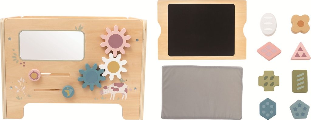 Když si dítě sedne, neznamená to, že se přestane hýbat. Aspoň ne s touto motorickou stoličkou! Na první pohled vypadá jako obyčejné sedátko, ale pozor, pod sedákem se ukrývá kreslící tabulka a po stranách je připravena spousta aktivit, které zaměstnají malé ručičky i hlavičky. Labyrint se zvířátky, vkládací tvary, ozubená kolečka, hodiny, zrcátko… Tahle stolička je malá, ale neskutečně akční. A k tomu všemu laděná do přírodních a pastelových tónů, takže se stane i atraktivním doplňkem dětského pokoje či herny. Stolička je dodávána v nesloženém stavu. Nutná montáž dospělou osobou. Hlavní vlastnosti: multifunkční stolička se sedákemse spoustou aktivitkombinace přírodního dřeva a pastelových barevrozvíjí jemnou motoriku, logické myšlení a kreativitustabilní a kvalitní dřevěné provedení nutná montáž dospělou osobouvhodné pro děti od 2 let