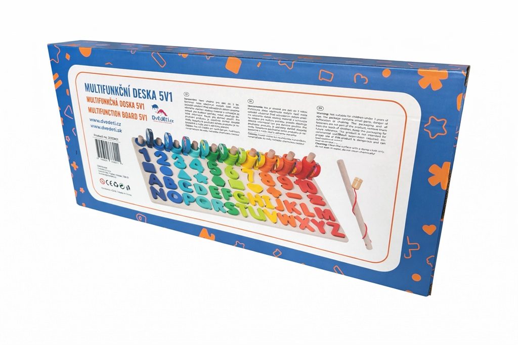 Každý malý šikula si najde to své! Dřevěná multifunkční deska nabízí edukativní hru a pomáhá dětem v koordinaci motoriky, zlepšování koncentrace a rozvoji logického myšlení. Jejím cílem je nejen učení přeměnit na zábavu, ale také vyvinout k učení u nejmenších kladný vztah. Vedle rozpoznávání čísel, tvarů a barev lze v této hře "rybařit" či stohovat kroužky na sebe. Všechny části dřevěné skládačky jsou dimenzovány tak, aby byly ideální pro drobné dětské ruce. Hlavní vlastnosti: multifunkční edukativní hraideální pro trénování motoriky a posílení logického myšlenípodporuje kreativitumění učení na zábavuveselý, pestrý design