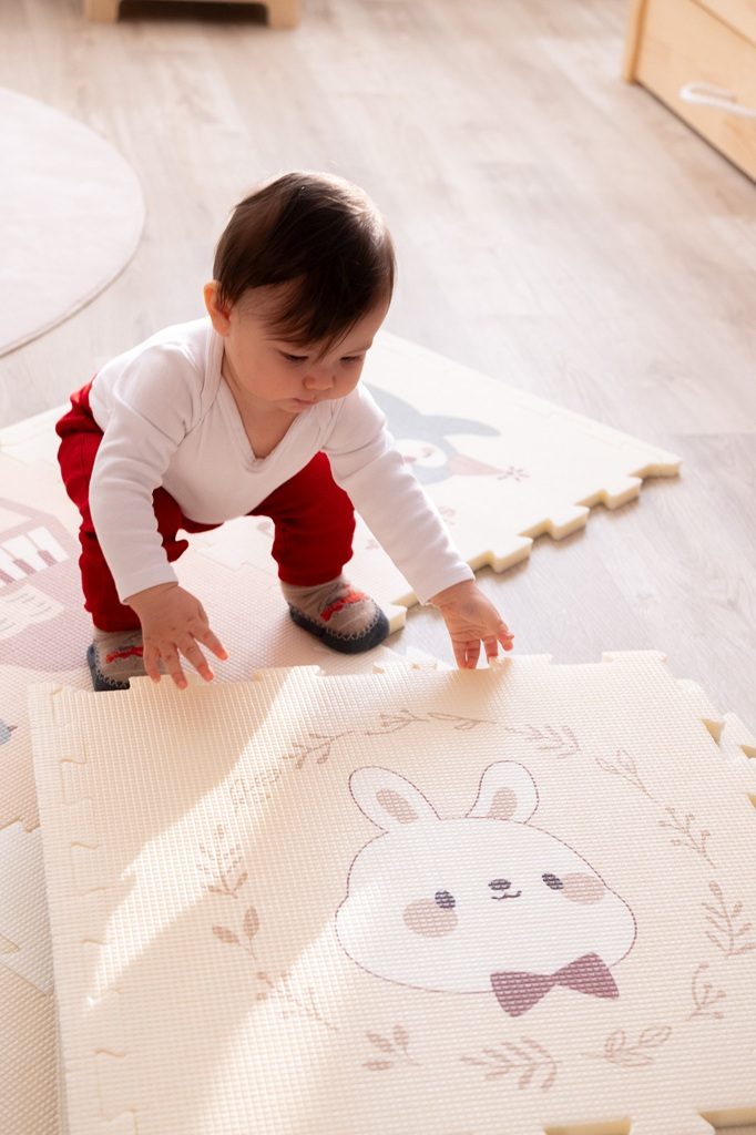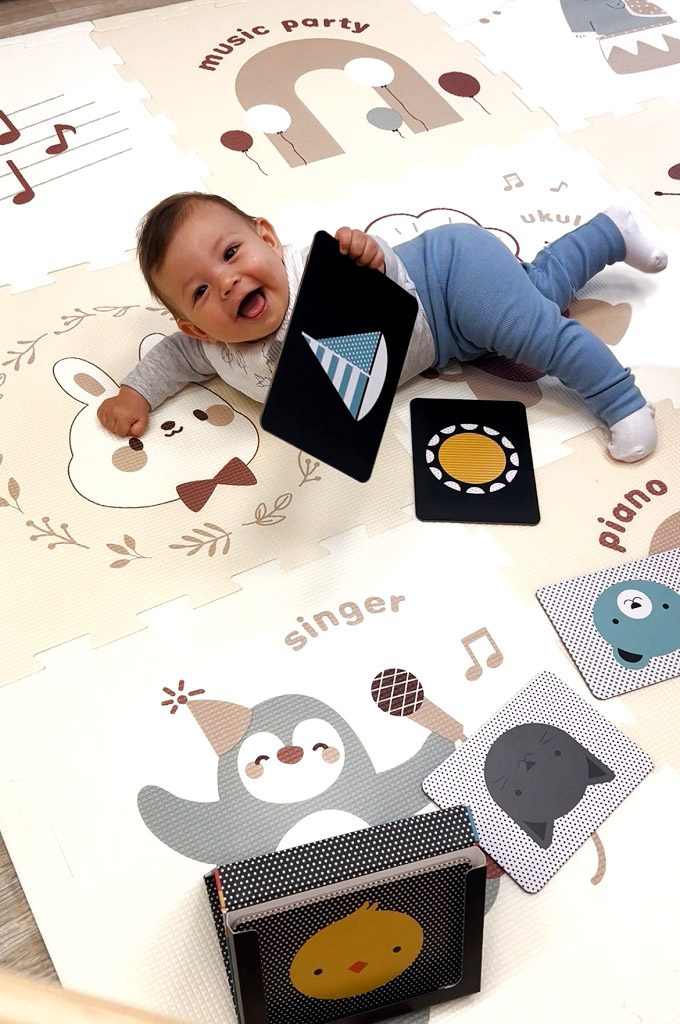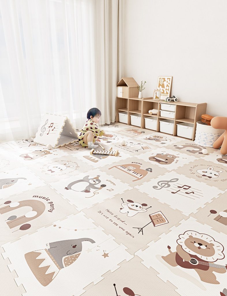 Hrací pěnová podložka se skládá z 9 čtverců se snadno spojí do praktické a pohodlné plochy pro hraní o velikosti 180x180 cm. Podložka je vyrobena z měkkého a bezpečného materiálu, který poskytuje dětem pohodlí a ochranu při pohybu na zemi. Na jednotlivých dílech jsou roztomilá zvířátka stylizovaná jako hudebníci, obklopená motivy hudby a notami, které podporují dětskou představivost a radost z objevování. Podložka je ideální pro domácí použití a pomáhá rozvíjet smyslové vnímání i kreativitu. Kombinace přírodních tónů v kombinaci s bílou barvou spolu s kvalitním provedením dělají z této podložky pěkný doplněk každého pokojíčku nebo herny. Hlavní vlastnosti: 9 čtvercůměkký a bezpečný pěnový materiálsnadné spojování jednotlivých dílůmotiv hudby a zvířátek jako hudebníkůpodporuje smyslové vnímání a kreativituvhodné pro děti od 6 měsíců