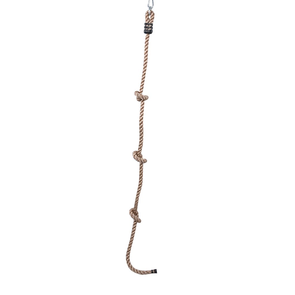 Dětské šplhací lano s uzly.Nezbytný pomocník pro objevitele venkovní zábavy na dětském hřišti nebo k domečku na stromě. Hlavní vlastnosti: nosnost: 100 kgdélka lana je 2 mpevné lano o tloušťce 2,6 cm