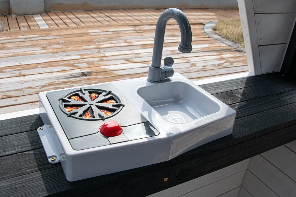 Kdo by netoužil po svém vlastním bydlení! Dopřejte svým dětem klidný kout, kde můžou odpočívat, mít soukromí a nerušeně si hrát. V tomto rozkošném domečku se budou cítit jako v pohádce. Velké boční okno nabízí krásný výhled do okolí a umožní proměnit domeček v prodejní stánek nebo obchod. V útulné kuchyňce, ve které nechybí varná deska s otočným červeným knoflíkem, dřez a základní nádobí, předvedou malí kuchaři a kuchařky své kulinářské dovednosti a připraví pro kamarády nebo rodiče chutné menu. Dalšími stylovými doplňky jsou hodiny, truhlíky po stranách vstupních dveří, ve kterých se budou krásně vyjímat květiny, praktický vstup pro pejska, který je překryt látkovým závěsem s motivem psí boudy. Domeček je vyroben ze dřeva a opatřen nátěrem v přírodních barvách. Bude skvělým doplňkem a ozdobou každé zahrady nebo menšího venkovního prostoru. Tak na co ještě čekáte? Zazvoňte na zvonek a pojďte dál! K napájení zvonku slouží 3 baterie LR44, které nejsou součástí balení. Dodáváno v rozloženém stavu s podrobným návodem na sestavení. Hlavní vlastnosti: funkční zvonek, kuchyňský kout s vybavením (varná deska, dřez, pánev, 2 ks náčiní), truhlíky, vstup pro pejskarozvíjí sociální dovednostiútulný designkvalitní a detailní provedenívyrobeno ze dřevavhodné pro hru více dětík napájení slouží 3 baterie LR44 (nejsou součástí balení)dodáváno v rozloženém stavunávod na sestavení je součástí balení Informace pro B2B partnery: dropshipping v rámci ČR!