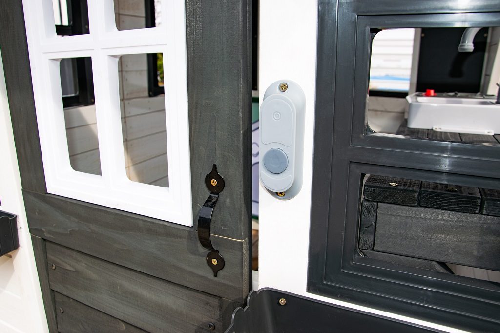 Rozměry domečku: délka 139 cm, šířka 122 cm, výška 161 cm Rozměry balení: 122x56x37 cm Věk: 3+ Materiál: dřevo, látka Napájení zvonku: 3 baterie LR44 (nejsou součástí balení) Dodáváno v rozloženém stavu