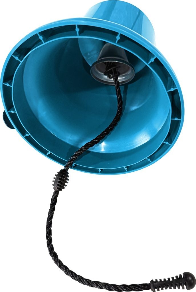Slyšíte to cinkání? Tyrkysový zvoneček se stane nezbytným doplňkem každého dětského hřiště. Uvnitř zvonku je ukryt menší zvoneček, díky čemuž je zvuk tlumenější a citlivý dětský sluch je tak účinně chráněn. Podporuje fantazii dětí a motivuje k představivé hře. Hlavní vlastnosti: materiál odolný povětrnostním vlivůmrozvíjí fantazii dětí motivuje k představivé hředržák a montážní materiál jsou součástí balení