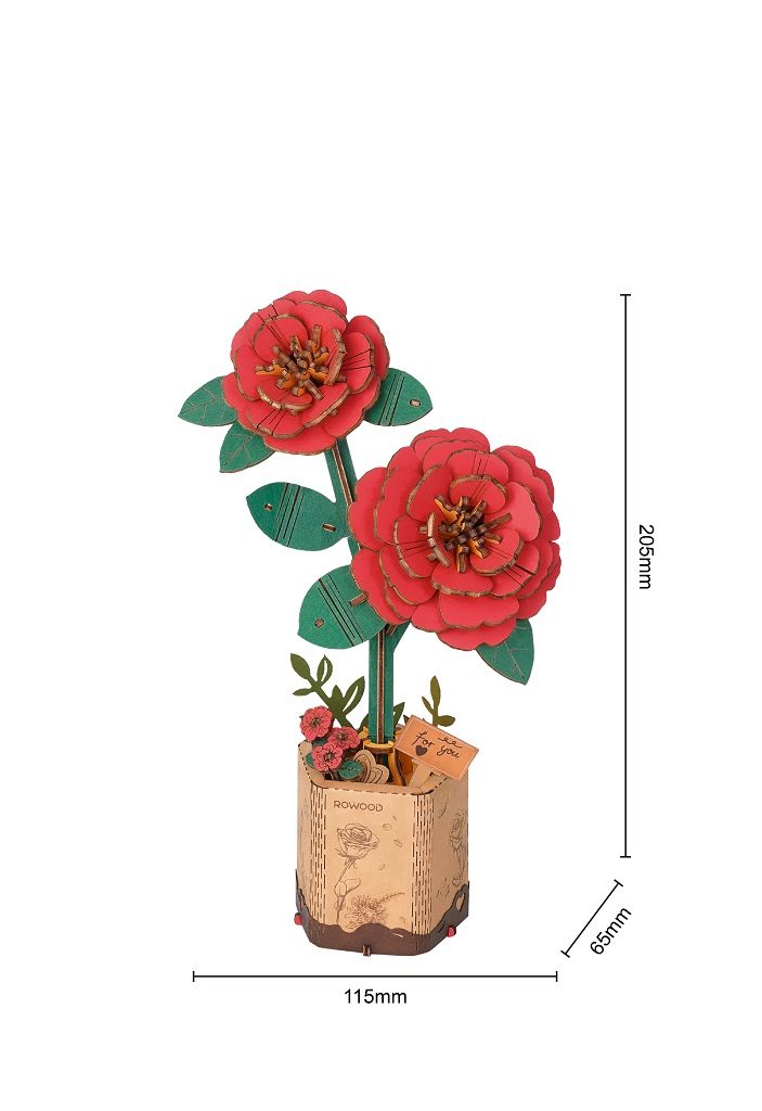 Tato 3D skládačka je skvělým způsobem, jak si užít kreativní a edukativní hraní a zároveň vytvořit nádherný model rostliny. Skládačka přichází se 113 dílky, které lze snadno spojit do trojrozměrného modelu. Realistický model červené kamélie může posloužit jako dekorativní prvek na stole či polici. Skládání 3D skládačky podporuje rozvoj jemné motoriky, prostorového myšlení a trpělivosti. Je to skvělý způsob, jak kombinovat zábavu se vzděláváním. Hlavní vlastnosti: výjimečný a realistický vzhleddřevo je přírodní a ekologicky šetrnéskládačka je vhodná pro děti i dospělé