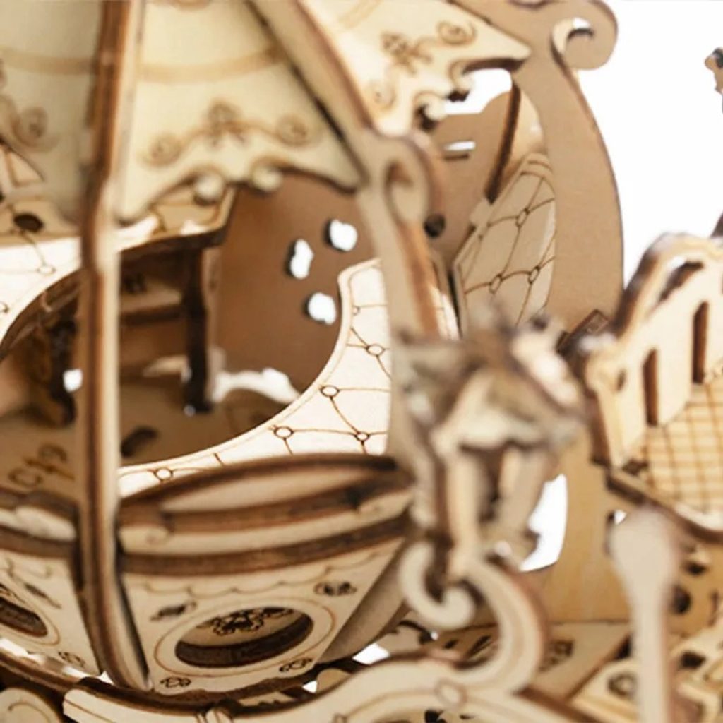 Detailní model pohádkového kočáru s kabinou ve tvaru dýně. Patří do řady skládaček, které jsou určeny k vystavení, nejsou interaktivní a nemají žádné pohyblivé díly. Skládačka je dodávána v nesloženém stavu, balena v krabici. Vybaveno detailním návodem k sestavení. Hlavní vlastnosti:182 precizně vyřezaných dílkůnízká obtížnost sestavení