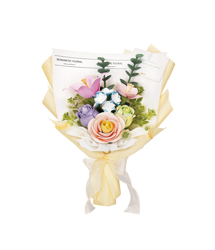 Připomeňte si atmosféru jara každý den bez ohledu na roční období něžnými květinami a překvapte své blízké vlastnoručně vyrobeným dárkem. Darování květiny je vynikající způsob, jak vyjádřit obdarovanému lásku, obdiv či přátelství a popřát mu vše nejlepší. Jarní kytice v jemných pastelových barvách, které spolu dokonale ladí, se skládá z lilie, kamélie, fialové a zelenkavé růže, hortenzie, narcisu a eukalyptu a dodává se s balicím papírem a rostlinnými doplňky.Tato 3D skládačka je skvělým způsobem, jak si užít kreativní a edukativní hraní a zároveň vytvořit nádherný model, který se může stát netradičním dárkem či ozdobou interiéru. Skládání 3D skládačky podporuje rozvoj jemné motoriky, prostorového myšlení a trpělivosti. Je to možnost, jak kombinovat zábavu se vzděláváním. Skládačka je dodávána v nesloženém stavu, zabalená v krabici s podrobným návodem k sestavení. Obsah balení: 1 lilie, 1 kamélie, 1 fialová růže, 1 zelenkavá růže, 1 hortenzie, 1 narcis, eukalyptus, balící papír, rostlinné doplňky. Hlavní vlastnosti: 165 dílkůdoba skládání 1,5 hodsestavení bez použití lepidlavýjimečný a realistický vzhledvhodné pro děti i dospělérozvíjí logické a motorické dovednosti a trpělivostideální jako dárek nebo jedinečná dekorace