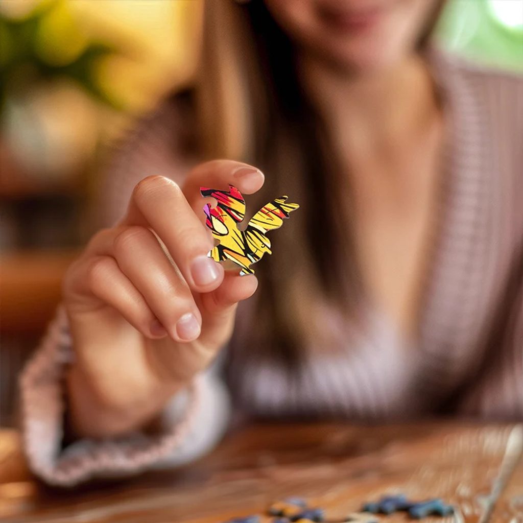 Unikátní pestrobarevné dřevěné puzzle, které spojuje prvotřídní zpracování s uměleckou hodnotou, je vyrobeno z vysoce kvalitního dřeva. Každý dílek je jedinečný! Dílky jsou různých tvarů a jsou precizně vyřezány laserem, což zajišťuje dokonalou přesnost a hladkost hran. To usnadňuje skládání i manipulaci a dílky do sebe dokonale zapadají. Puzzle je opakovaně použitelné, takže si zábavu při skládání můžete užít znovu a znovu. Je to výzva pro všechny milovníky skládaček a také dobrá příležitost, jak příjemně strávit čas se svou rodinou či přáteli. Kromě toho může být pěkným dárkem a po dokončení se stane atraktivním doplňkem Vašeho domova či kanceláře. Skládání puzzle trénuje mozek, podporuje trpělivost, jemnou motoriku a dovednosti při řešení problémů. Hlavní vlastnosti: obsahuje 200 jedinečných dílkůtvarované dílky precizně vyřezány laseremrozvíjí logické myšlení a motorikuvyrobeno z vysoce kvalitního dřevafólie na podlepení je součástí balení