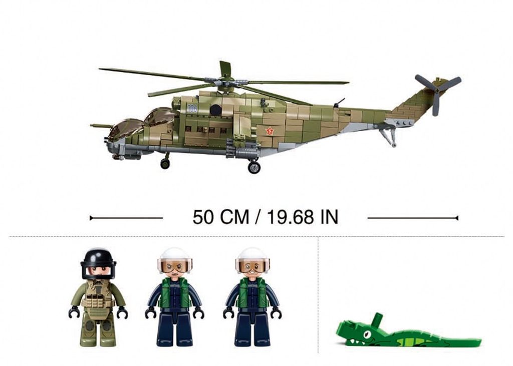 Představujme vašemu malému dobrodruhovi nový přírůstek do jeho sbírky stavebnic: Sluban Bojový vrtulník MI-24S M38-B1137! Toto je nejen obyčejná hračka, ale replika jednoho z nejikoničtějších a nejvšestrannějších bojových vrtulníků v historii. Představte si ten pocit, když v rukou držíte 893 bloků a začnete stavět vlastní model vrtulníku MI-24S. Tento detailně propracovaný model s 3 minifigurkami vám umožní zažít hodiny a hodiny zábavy a dobrodružství. Při stavbě tohoto vrtulníku si děti nejen užijí zábavu, ale také rozvíjí své dovednosti a kreativitu. Tento model vrtulníku MI-24S je tak autentický, že až ho postavíte, budete cítit, jak se vaše dítě ocitá uprostřed bojiště, kde vrtulník převáží vojáky a útočí na obrněné cíle. Tento vrtulník je vybaven různými zbraněmi, včetně rotačního kanónu namontovaného na bradě, raketových podstavců a protitankových řízených střel. A co víc? Vrtulník MI-24S je chráněn pancéřovým plátováním, což jej činí odolným proti některým pozemním hrozbám. Nemusíte být pilotem, abyste si užili zážitek z řízení vrtulníku MI-24S! Hlavní vlastnosti: 893 dílů3 minifigurky s otáčivými i výkyvnými částmi tělkompatibilní se stavebnicemi dalších výrobcůvhodné od 12 let