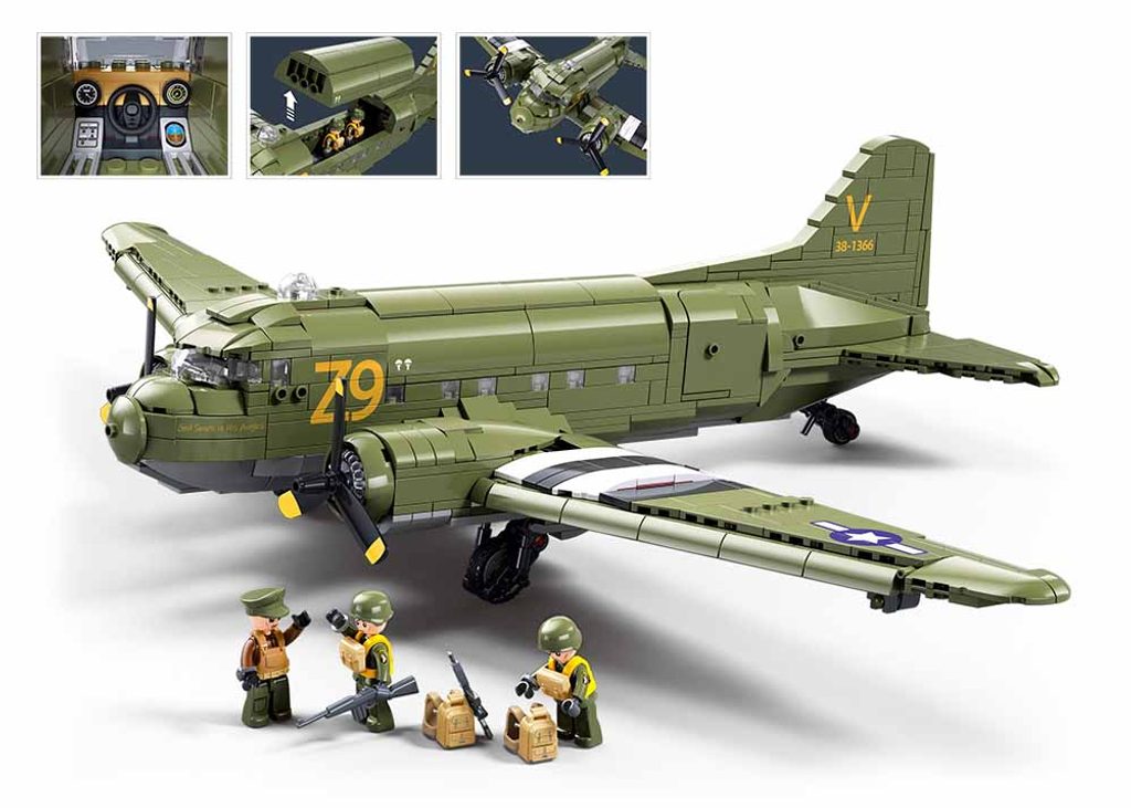 Tato detailní stavebnice od značky Sluban představuje velké vojenské dopravní letadlo v klasickém olivově zeleném provedení. Model je navržen tak, aby nabídl jak realistický vzhled, tak i spoustu herních prvků, díky nimž si děti mohou vytvářet své vlastní akční příběhy. Letadlo má charakteristický dvoumotorový design s širokým trupem a propracovanými křídly. Otevírací části umožňují přístup do kokpitu i do zadní nákladové sekce, kde mohou minifigurky a vybavení simulovat výsadkové operace. Nechybí ani funkční podvozek a otočné vrtule. Součástí setu jsou také minifigurky vojáků s příslušenstvím, které obohacují hru o další možnosti. Vybavení jako bedny, zbraně a výstroj zvyšují celkovou herní hodnotu stavebnice.Inovativní stavebnice Sluban je možno kombinovat s podobnými stavebnicemi mnoha dalších významných výrobců. Jsou vyráběny z kvalitního, nezávadného a odolného ABS plastu. Každá stavebnice je opatřena návodem k sestavení a balena v pestře potištěné papírové krabičce. Hlavní vlastnosti: vojenské dopravní letadlo inspirované klasickými armádními strojidetailní zpracování trupu, kokpitu a motorových částíotevíratelné části – přístup do kokpitu i nákladového prostorusoučástí jsou minifigurky a tematické příslušenstvíkompatibilní s jinými stavebnicemiotočné vrtule a výsuvný podvozekperfektní pro malé stavitele i sběratele vojenské techniky