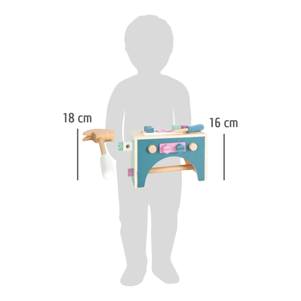 Praktická sada nářadí v bedýnce s rukojetí. Hračka 2v1, když bedýnku otočíte, můžete ji použít jako pracovní desku! Díky této vychytávce dětem hračka nabídne nekonečné možnosti hraní, mohou si hrát i na cestách. Neokázalé skandinávské barevné schéma s jasně viditelným dřevem. V balení najdete 5 ks nářadí – kladivo, klíč, šroubovák, hasák, svěrák. Rukojeť můžete odstranit za pomocí nářadí, nářadí můžete do bedýnky jednoduše uložit díky jejím otvorům. Genderově neutrální design v jemných pastelových barvách. Skvěle se hodí k ostatním produktům z řady Nordic. Hlavní vlastnosti: dřevěná motorická hračkagenderově neutrální designproduktová řada Nordic