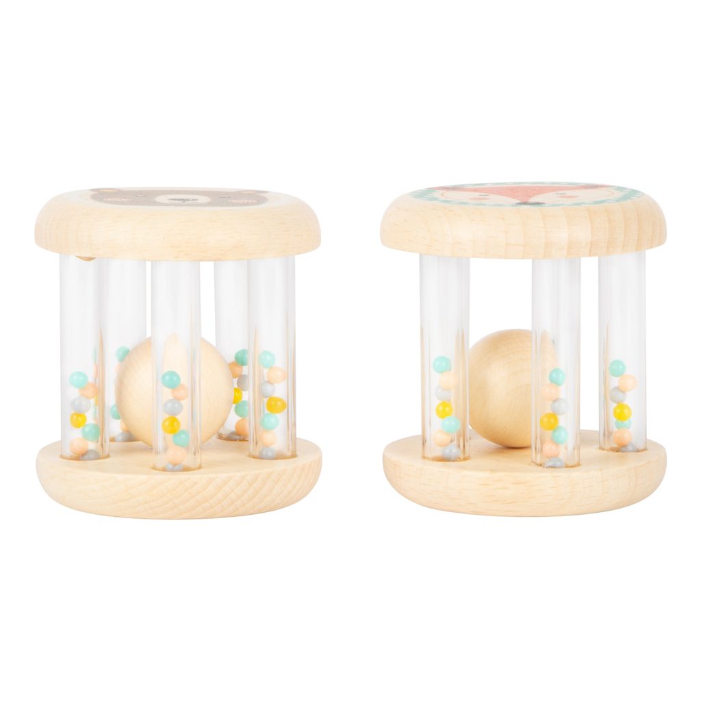 Hmatání, kutálení, chrastění! Dřevěné chrastítko s dřevěnou kuličkou uprostřed, kterou drží průhledné trubičky, ve kterých jsou barevné korálky. Požitek pro oči i uši! Ideální hračka v sadě 2 ks, rozvíjí motorické dovednosti a smyslové vnímání dětí. Pro děti jednoduše uchopitelné. Hračka z přírodního dřeva s pastelovým potiskem zvířete. Hlavní vlastnosti Přírodní barva s pastelovým potiskemOriginální designRozvíjí motoriku a smyslové vnímání dětí