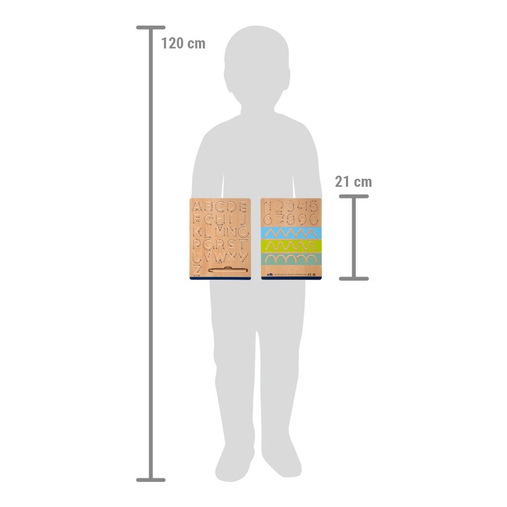 Blíží se škola a Vy máte pocit, že psaní by mohlo být pro Vaše dítě problém? S touto sadou desek pro trénink psaní, vyrobenou z kvalitního FSC® certifikovaného dřeva, se Vaše dítě naučí uchopit psací náčiní a osvojí si základy psaní, a to zábavnou formou a bez použití papíru. Na dvou dřevěných oboustranným deskách najdete šablony s drážkami s různými tvary, číslicemi a písmeny. Přiloženou tužkou bez tuhy projíždí dítě drážkami, šipkami naznačeným směrem a tak se učí, jak číslici či písmeno správně napsat. Součástí je integrovaný zásobník na tužky, aby byly vždy připraveny k použití. Hlavní vlastnosti: vyrobeno ze 100% FSC® dřeva2 oboustranné desky a 2 tužky bez tuhytrénuje jemnou motoriku rukouvhodné pro předškolákynácvik psaní zábavnou formou Značka a certifikát FSC® (Forest Stewardship Council) zaručuje, že dřevo, ze kterého byl produkt vyroben, nebylo vytěženo nelegálně a pochází z lesů obhospodařovaných šetrným či přírodě blízkým způsobem, ve kterém jsou dodržovány přísné environmentální a sociální požadavky. Značka FSC® na výrobku znamená, že svým nákupem pomáháte chránit lesy a podporujete šetrné, odpovědné či přírodě blízké hospodaření, díky kterému jsou naše lesy stabilnější, zdravější, mají přirozenou druhovou skladbu a lépe odolávají negativním následkům klimatických změn.