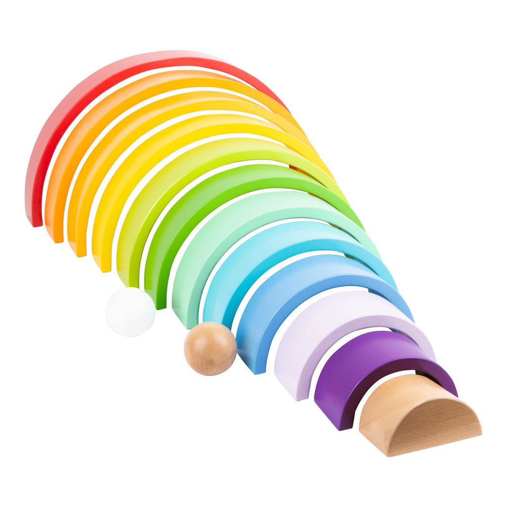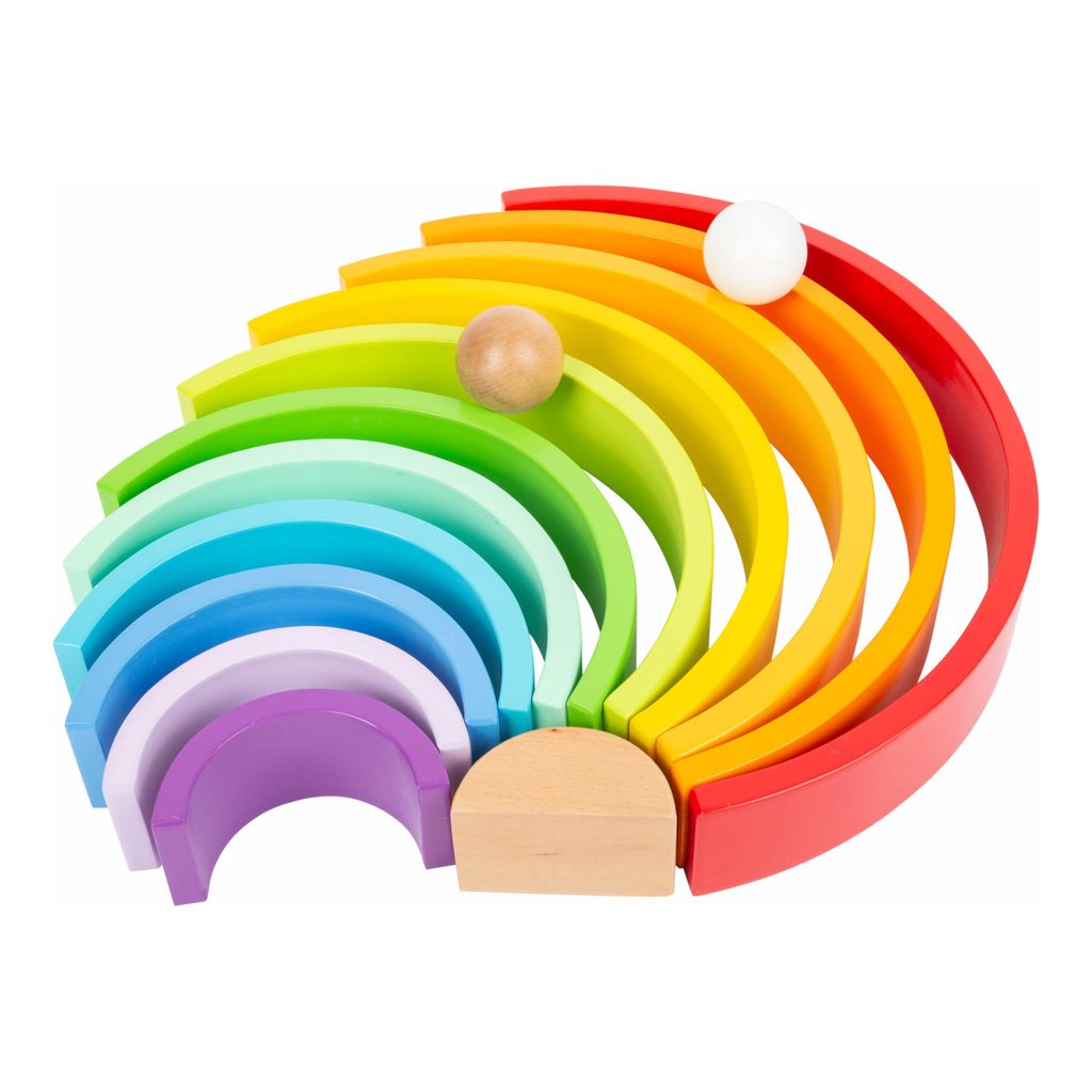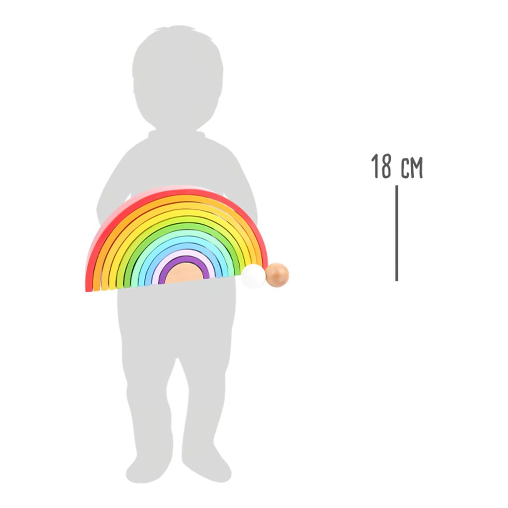 Barevná zábava zaručena! Duha včetně 2 dřevěných kuliček je vyrobena z odolného dřeva v pestrých barvách. Složená duha patří na každou polici v pokojíčku, má mnoho variací skládání a hraní. Z duhy lze vytvořit také dráhy pro kuličky, vysoká věž nebo houpačka pro plyšáky. Je všestranná a podporuje tvořivost dětí. Která barva je nejkrásnější? Hlavní vlastnosti: Rozvíjí motoriku dítětePoužívá se v MontessoriKvalitní zpracování dřeva