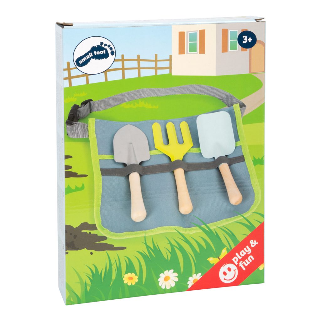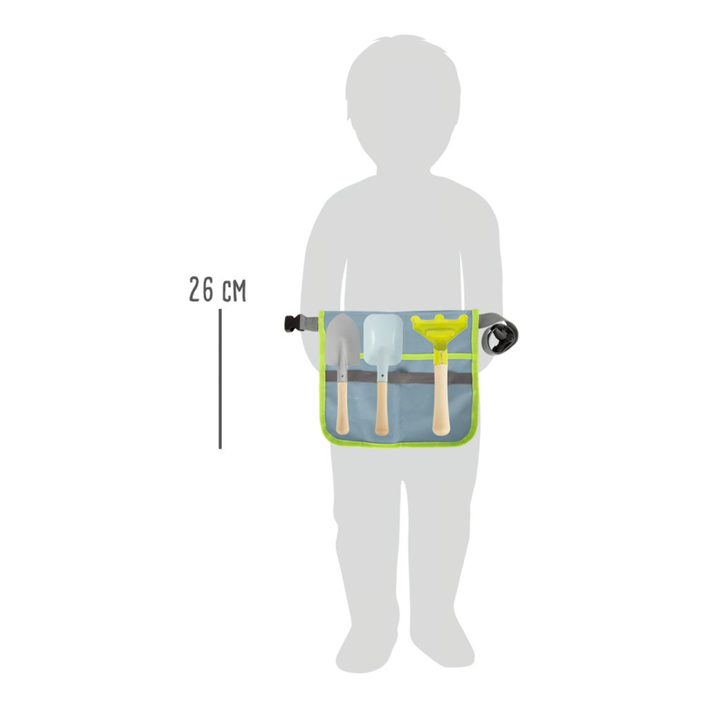 S touto ledvinkou na zahradní nářadí mohou mladí a začínající zahradníci opravdu pomáhat na zahradě a přitom mít volné ruce. Jednoduše si nasaďte snadno nastavitelný opasek s cvakací sponou a výsadba může začít! Lopata, hrábě a rýč jsou vyrobeny z kovu, mají velikost vhodnou pro děti a stabilní dřevěné rukojeti. Zábava na vlastní zahradě je zaručena! Hraní a výsadba podporuje aktivní hraní rolí a trénuje motorické dovednosti. Ideální doplněk. Hlavní vlastnosti: ideální doplněkledvinka s 3 ks nářadípodporuje hru a motorické dovednosti