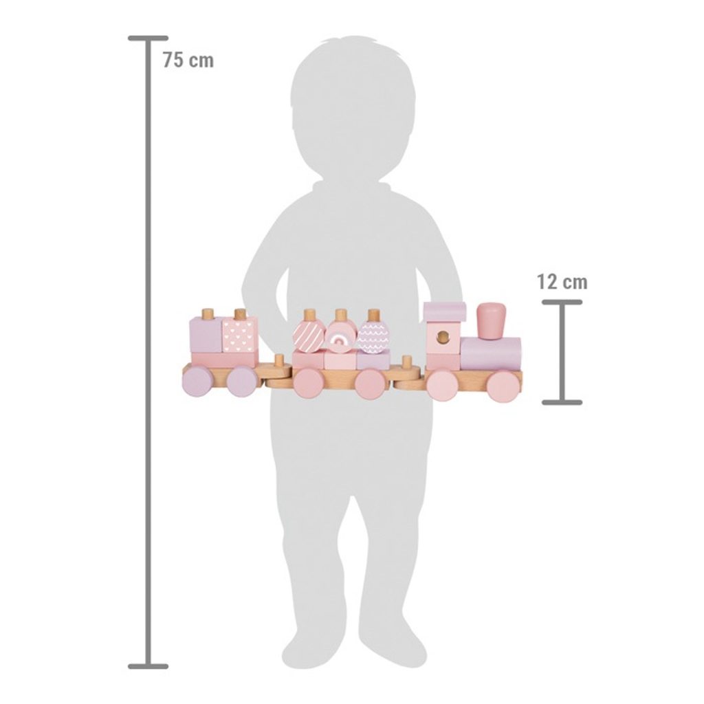 Dřevěný vláček v pastelových barvách s jemnými motivy nadchne každé malé dítě! Lokomotiva se dvěma vagónky a 14 barevně sladěnými stavebními dílky zve ke skládání, stavění i volné hře. Kostky se nasazují na dřevěné tyčky, a rozvíjejí tak jemnou motoriku i koordinaci pohybů. Jednotlivé dílky lze navíc libovolně kombinovat a používat i samostatně jako dřevěné kostky – ideální pro malé stavitele s velkou fantazií. Jemné barvy v kombinaci s přírodními tóny dřeva dělají z tohoto vláčku nejen zábavnou hračku, ale také krásnou dekoraci do dětského pokoje. Skvělý dárek pro jakoukoliv příležitost! Hlavní vlastnosti: 1 lokomotiva, 2 vagónky, 14 nasazovacích kostekpodněcuje kreativiturozvíjí jemnou motoriku a koordinaci ruka-okovyrobeno z kvalitního, pevného dřevajemné barvy a moderní designkrásná dekorace i originální dárekvhodné pro děti od 12 měsíců