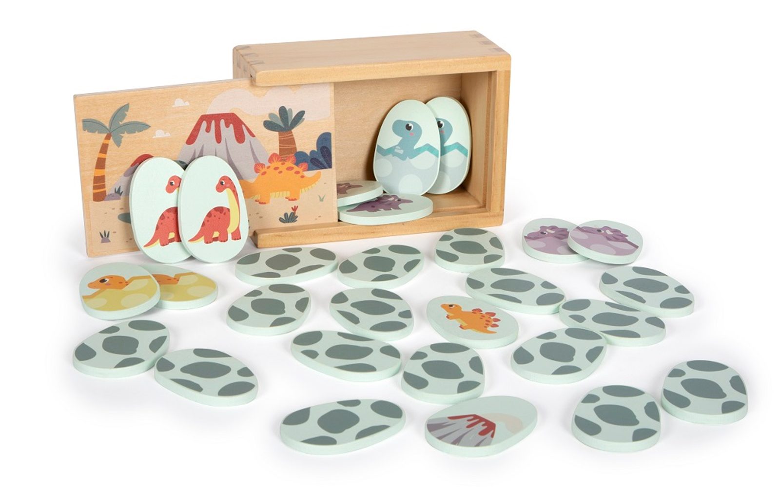 Tato klasická hra v kompaktním formátu jistě přinese dlouhotrvající herní zábavu fanouškům dinosaurů všech věkových kategorií. Ponořte se do dobrodružného světa prehistorické éry. Pexeso v roztomilém motivu dinosauřích vajec je společenská hra pro celou rodinu. Procvičujte své paměťové schopnosti a najděte všech 14 párů odpovídajících obrázků. Tuto společenskou hru lze snadno uložit a přepravovat v krabičce s posouvatelným víkem. Hra je tak vhodná i na cesty. Pexeso je vyrobeno ze 100% certifikovaného dřeva FSC®. S hračkami z produktové řady "Dino" jsou tématem fascinující prehistoričtí tvorové, kteří upoutají pozornost lidí všech věkových kategorií. Tyto dřevěné hračky podporují rozvoj motorických dovedností, inspirují dětskou kreativitu a představivost a povzbuzují děti, aby se dozvěděly více o přírodě a historii těchto pravěkých obrů. Hlavní vlastnosti: klasická hra v zajímavém Dino motivuvhodné pro 2-4 hráčeideální na cesty14 párů obrázkových vajectrénuje koncentraci a paměť zábavnou formoukvalitní a milá ilustrace Značka a certifikát FSC® (Forest Stewardship Council) zaručuje, že dřevo, ze kterého byl produkt vyroben, nebylo vytěženo nelegálně a pochází z lesů obhospodařovaných šetrným či přírodě blízkým způsobem, ve kterém jsou dodržovány přísné environmentální a sociální požadavky. Značka FSC® na výrobku znamená, že svým nákupem pomáháte chránit lesy a podporujete šetrné, odpovědné či přírodě blízké hospodaření, díky kterému jsou naše lesy stabilnější, zdravější, mají přirozenou druhovou skladbu a lépe odolávají negativním následkům klimatických změn.