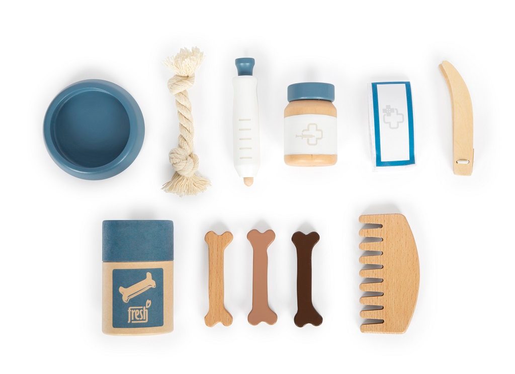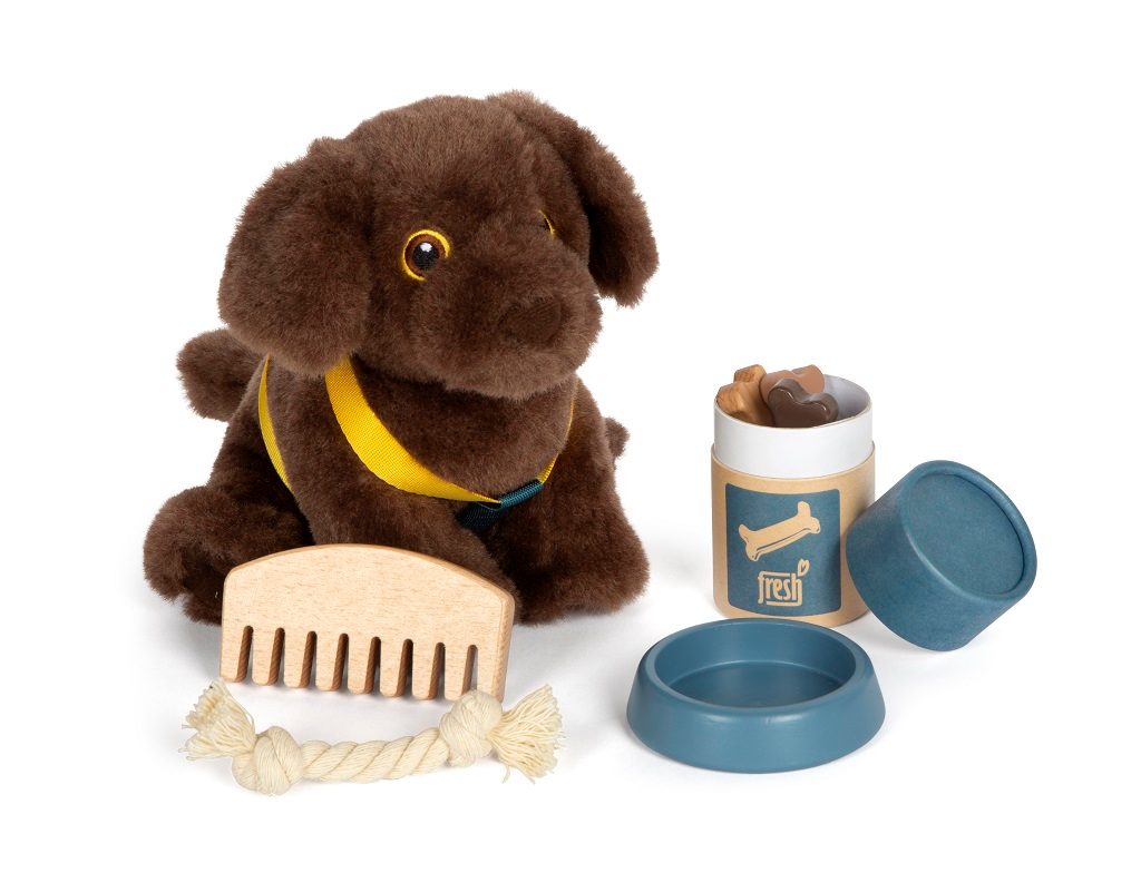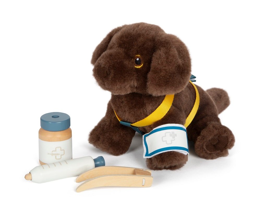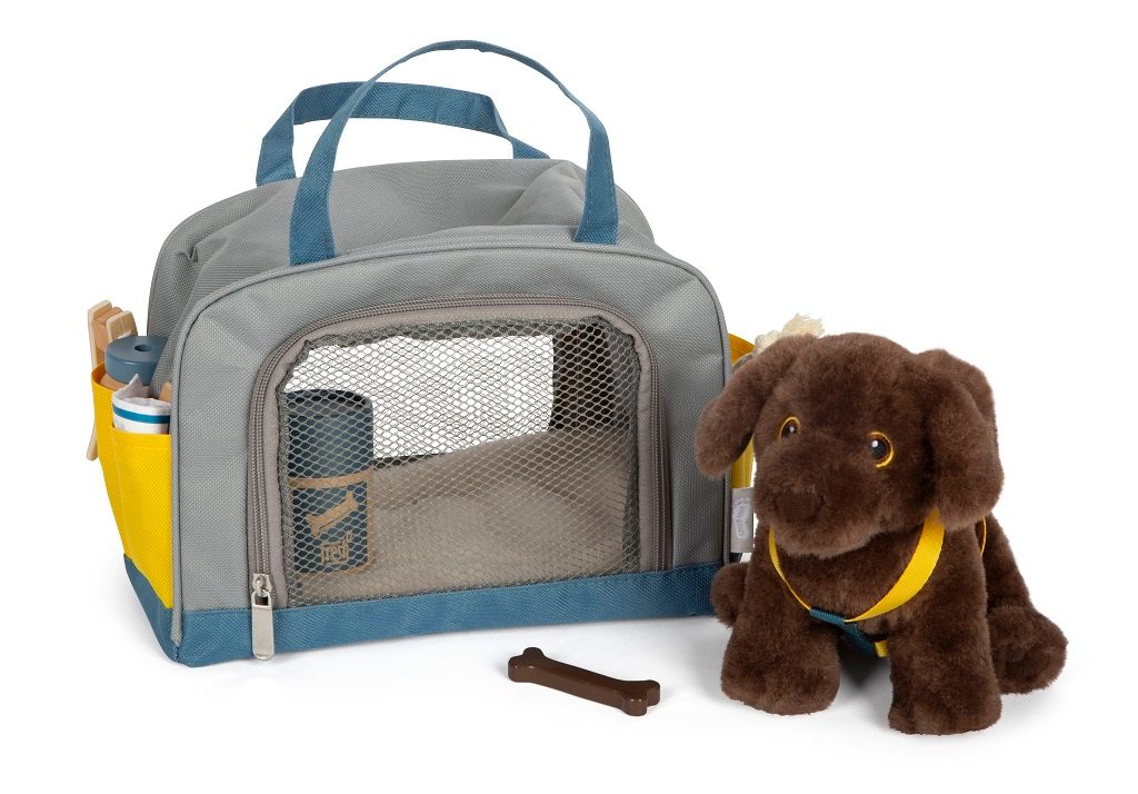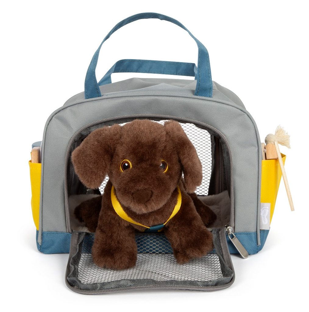 Plyšový kamarád, který má v sadě vše, co potřebujete, abyste o něj mohli pečovat. Nastěhujte si štěně do svého pokojíčku anebo si ho vezměte s sebou na cesty. Díky praktické přepravní tašce už svého mazlíčka nikdy nebudete chtít nechat doma. Sada obsahuje přepravní tašku s podložkou, pejska s postrojem a příslušenstvím pro jeho pohodlí. Co kdyby na cestách onemocněl, poranil si tlapku nebo měl klíště? Nebojte se! Tato sada obsahuje vše, co je potřeba. S ní máte jedinečnou příležitost předvádět realistické veterinární situace. Krmení, péče, hraní, léčení – tento plyšový pes s pečovatelskou sadou nabízí spoustu různých herních scénářů a povzbuzuje k aktivnímu hraní rolí.Hlavní vlastnosti: realistické zvířátkoplyšová hračka s postrojemsada obsahuje plyšového pejska, přepravní tašku s podložkou, misku, dózu na pamlsky, pinzetu, obvaz, krabičku na léky, hračku, kartáč a injekční stříkačku s pružinovým mechanismemtrénuje sociální a emocionální dovednosti