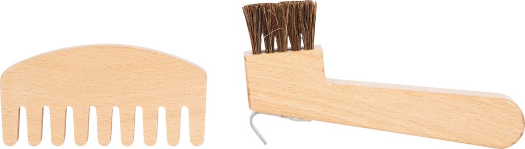 Taška s příslušenstvím na čištění a péči o koně. Je vhodná pro všechny děti, které mají rády koníky. Taška je odolná, praktická a dostatečně prostorná, aby pojala veškeré vybavení. Péče o koně je součástí každodenní rutiny každého fanouška koní a koníci kartáčování milují. Taška s doplňky je vyrobená z vysoce kvalitních materiálů a máte vše, co potřebujete, hned po ruce, i když jste na cestách. Mezi doplňky patří kartáč, hřeben, škrabka na kopyta a hřeben na hřívu, to vše se vejde do prostorného vnitřku tašky a do malé boční kapsy. A samozřejmě nechybí dřevěné jablko a mrkev. Sada se dodává s turnajovou stuhou, kterou si děti mohou připevnit na obojek hlavy svého koníka nebo na vlastní oblečení. Pomůcky na čištění koní jsou dokonale přizpůsobeny potřebám mladých fanoušků koní, takže mladí jezdci mohou při hře popustit uzdu své fantazii. Pohodlná stahovací šňůrka umožňuje tašku doširoka otevřít, ale také úplně zavřít. Tuto tašku pro děti lze nosit za obě uši nebo nastavitelný ramenní popruh. S touto sadou péče se mohou děti starat o svého oblíbeného koně stejně jako profesionálové. Hlavní vlastnosti: nezbytné příslušenství v tašce pro každého fanouška konínastavitelný ramenní popruhkomplexní sada