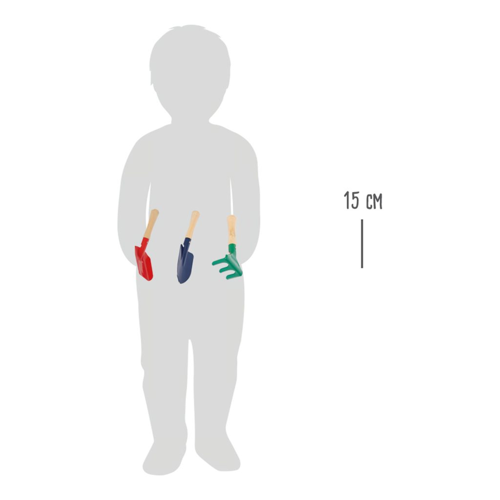 Dětské zahradní nářadí. 3 ks v balení – lopatka, rýč, hrabky. Děti jsou s těmito zahradnickými nástroji optimálně vybaveny pro péči o zahradu nebo při kopání v písku. Hlavní vlastnosti: ideální velikost pro dětirozvíjí motoriku a vztah k příroděvyrobeno z kovu, dřevěná násada
