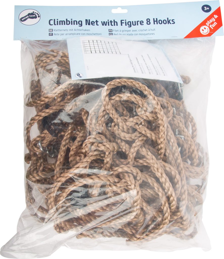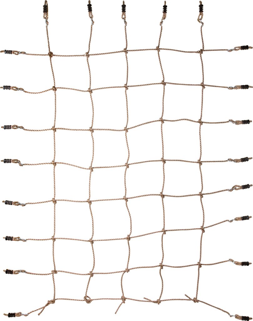 Šplhací síť je nezbytným doplňkem moderního dětského hřiště, děti mohou s jejím přispěním zesílit a zdokonalit hrubou motoriku. Je vyrobena z příjemně poddajného, ale odolného lana a umožňuje upravovat velikost ok. Konce lan jsou opatřeny robustními plastovými objímkami a kovovými průvleky, upevnění sítě je s jejich pomocí velmi snadné a spolehlivé. Síť je určena k upevnění do rámu, který není součástí balení. Hlavní vlastnosti: nosnost 100 kgrozměry sítě včetně upínacích popruhů 240×230 cm, rozměry vnitřní sítě 170x100 cm, velikost oka cca 25×25 cmdoporučené rozměry rámu 150×200 cm (dle tloušťky rámu), rám není součástí baleníupínací popruhy jsou pouze na bočních a horní straně sítě