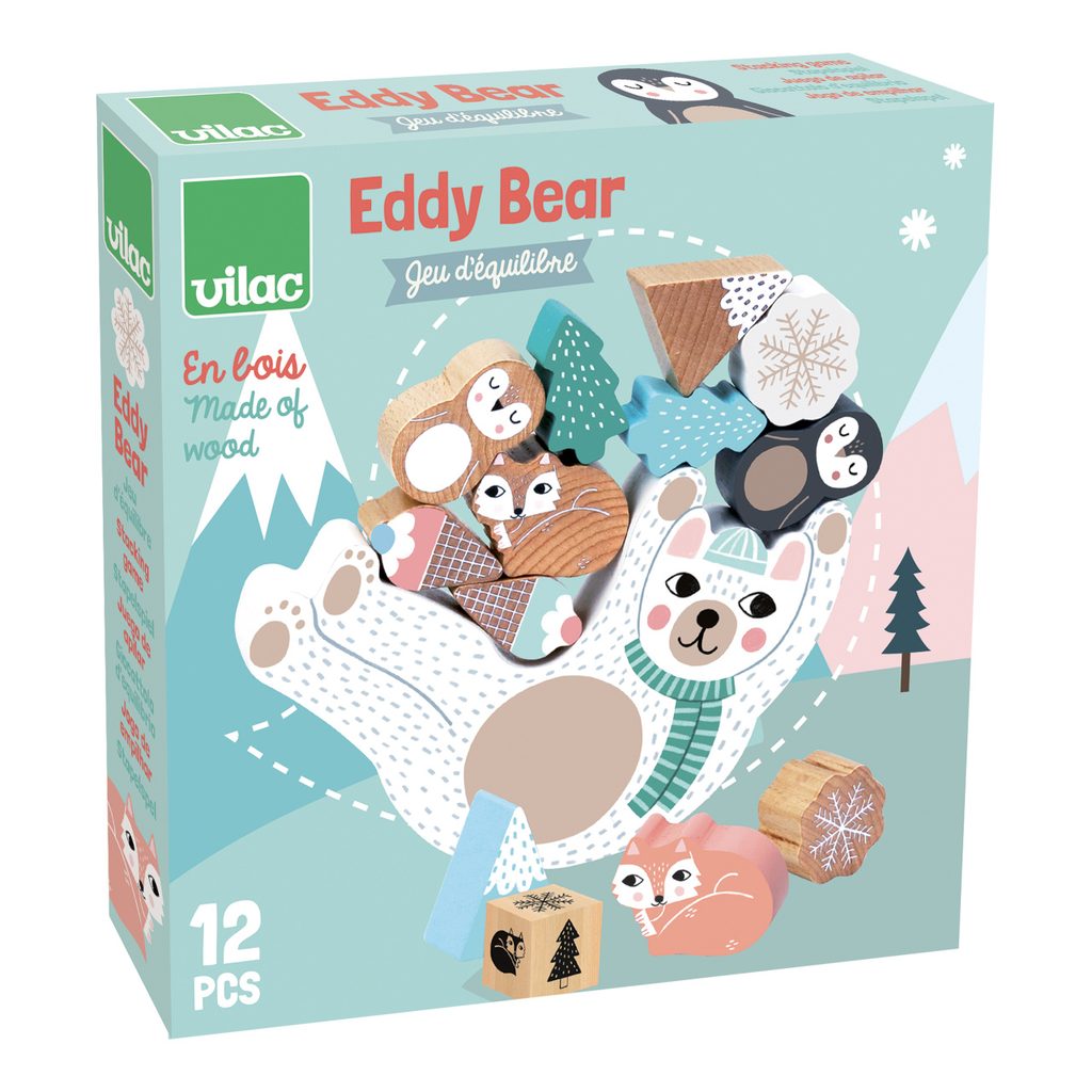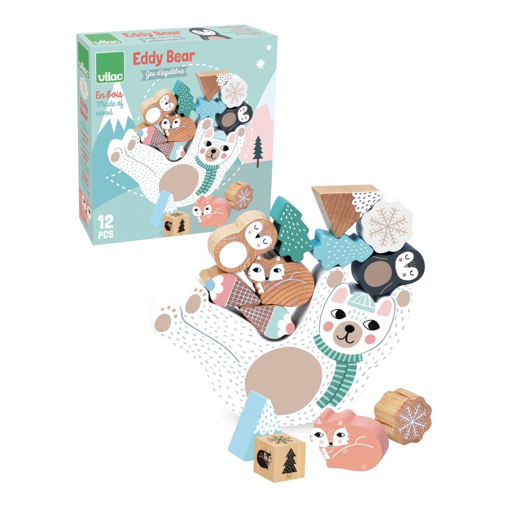 Balanční hra v jemných skandinávských tónech. Hoďte kostkou a podle barvy, která vám padne, zkuste na Eddyho břicho naskládat sněhové vločky, polární lišky, tučňáky nebo hory a chutnou zmrzlinu. Budete nejšikovnější, nespadne vám vše z Eddyho?!Tato hra pomůže s rozvojem jemné motoriky, zručnosti a soustředění.Ilustrováno Michelle Carlslund. Hlavní vlastnosti: 1 základna, 12 herních dílků a kostkailustrace Michelle Carlslundvyrobeno ekologicky, šetrně k životnímu prostředí Cestujte s námi v naivním a elegantním světě dánské ilustrátorky Michelle Carlslund, světě jemných barev, který je plný roztomilých medvědů a přátelských ptáčků. V roce 2010, když Michelle ještě studovala grafický design, vytiskla doma své ilustrace a zkusila je prodat na designovém trhu, kde se setkaly s velkým úspěchem! Několik obchůdků chtělo začít prodávat její výtvory, a tak ji napadlo, že by bylo fajn začít podnikat. Michelle se rychle stala uznávanou nezávislou ilustrátorkou. Dnes lze její ekologická grafická díla zakoupit po celém světě v designových buticích, papírnictvích a dětských obchodech. Michelle se inspiruje vším kolem ní. Její výtvory jsou něžné a poetické, stylizovaný a dětinský styl, který se perfektně prolíná s hračkami firmy Vilac. „Jsem hranolky milující, časová optimistka a tvůrkyně ekologických plakátů a ilustrátorka na volné noze se sídlem v dánské Kodani,“ to by řekla ilustrátorka Michelle Carlslundová, kdyby se měla popsat jednou větou.
