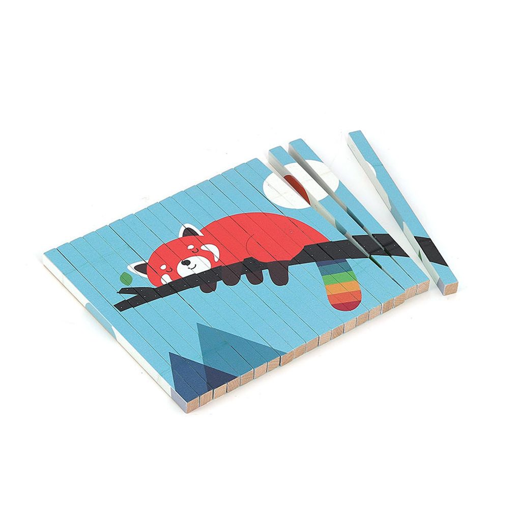 Nakloním se doleva a vidím pandu červenou! Nakloním se doprava a objeví se lední medvěd! Celkem čtyři různé ilustrace se ukrývají v jedné chytré skládačce – panda červená, lední medvěd, krokodýl a panda. Tato 4D skládačka s motivem zvířátek, které ilustroval známý umělec Andy Westface, nabízí dětem od 5 let zcela jedinečný herní zážitek. Díky dřevěným tyčinkám, které jsou potištěny ze čtyř stran, se podle úhlu pohledu objevují různé obrázky. Tento chytrý a nápaditý design nejen zaujme, ale také pomáhá dítěti rozvíjet logické myšlení a jemnou motoriku. Součástí je i vizuální značka, která dětem pomáhá skládačku správně složit. Skvělá volba pro zvídavé děti, které se rády učí hrou! Zasouváním tyčinek do rámečku si děti zlepšují koordinaci ruka-oko, přesnost pohybu i sílu v prstech. Tyto dovednosti jsou důležité nejen pro hry, ale i pro každodenní činnosti, jako je psaní nebo kreslení. Každý krok při skládání vyžaduje pozornost a pečlivost, takže se dítě učí trpělivosti a soustředění. Díky poetickému a barevnému stylu ilustrací Andyho Westface děti objevují nejen zvířátka, ale i nové příběhy. Mohou si samy vymýšlet scénky a povídky podle toho, co vidí. Hra tak rozvíjí nejen logické myšlení, ale i jazyk, slovní zásobu a představivost. Skládačka je proto skvělou kombinací vzdělávání a zábavy a je ideální pro smysluplné trávení času s rodiči i kamarády. Obsah balení 1 dřevěný stojánek20 dřevěných tyčinek potištěných z každé ze 4 stran Hlavní vlastnosti originální design ve 4 rozměrechjedinečný koncept podporující logické myšlenírozvíjí jemnou motoriku a koordinaci ruka-okovizuální nápověda pro snadnější skládání puzzletrénuje koncentraci a schopnosti řešit problémypodporuje představivostvhodné pro hru s rodinou nebo přátelipůsobivá dekoracedesign Andy Westfacevhodné pro děti od 5 let Andy Westface je ilustrátor žijící a působící v Hongkongu. Svou prací se snaží zprostředkovat silné pocity a jasné myšlenky za pomoci jednoduchých tvarů, kompozic i barevnosti. Typickými prvky jeho děl jsou zvířata a duha, které si oblíbil pro jejich čistotu, upřímnost a schopnost vzbuzovat radost.