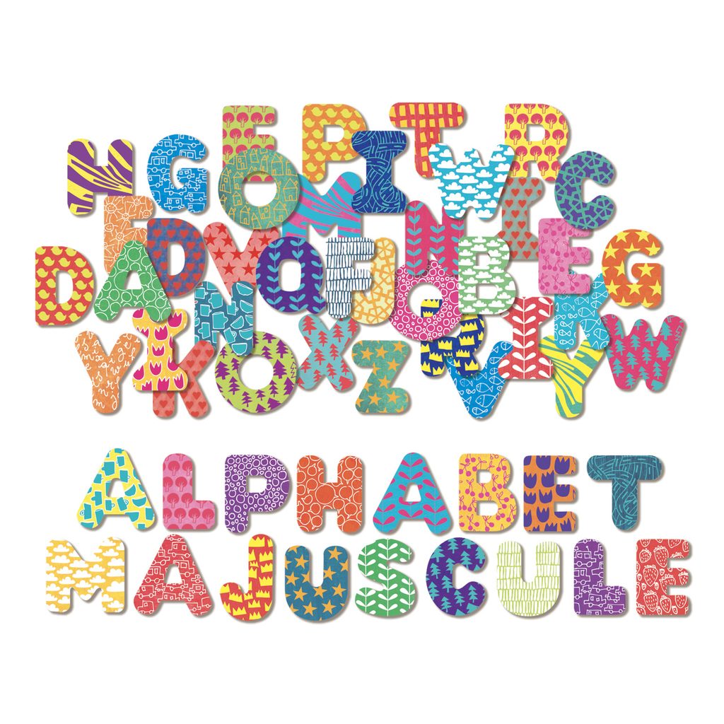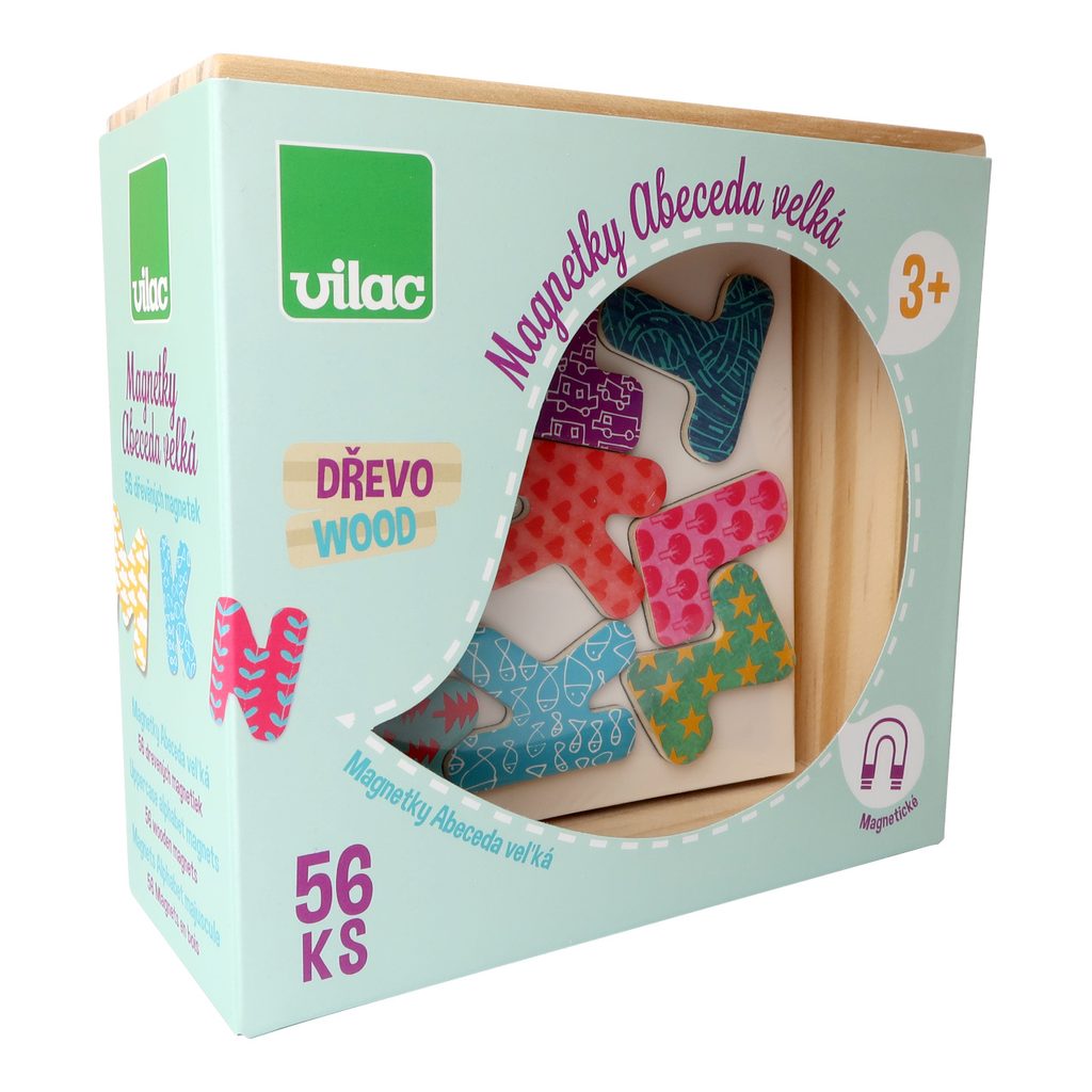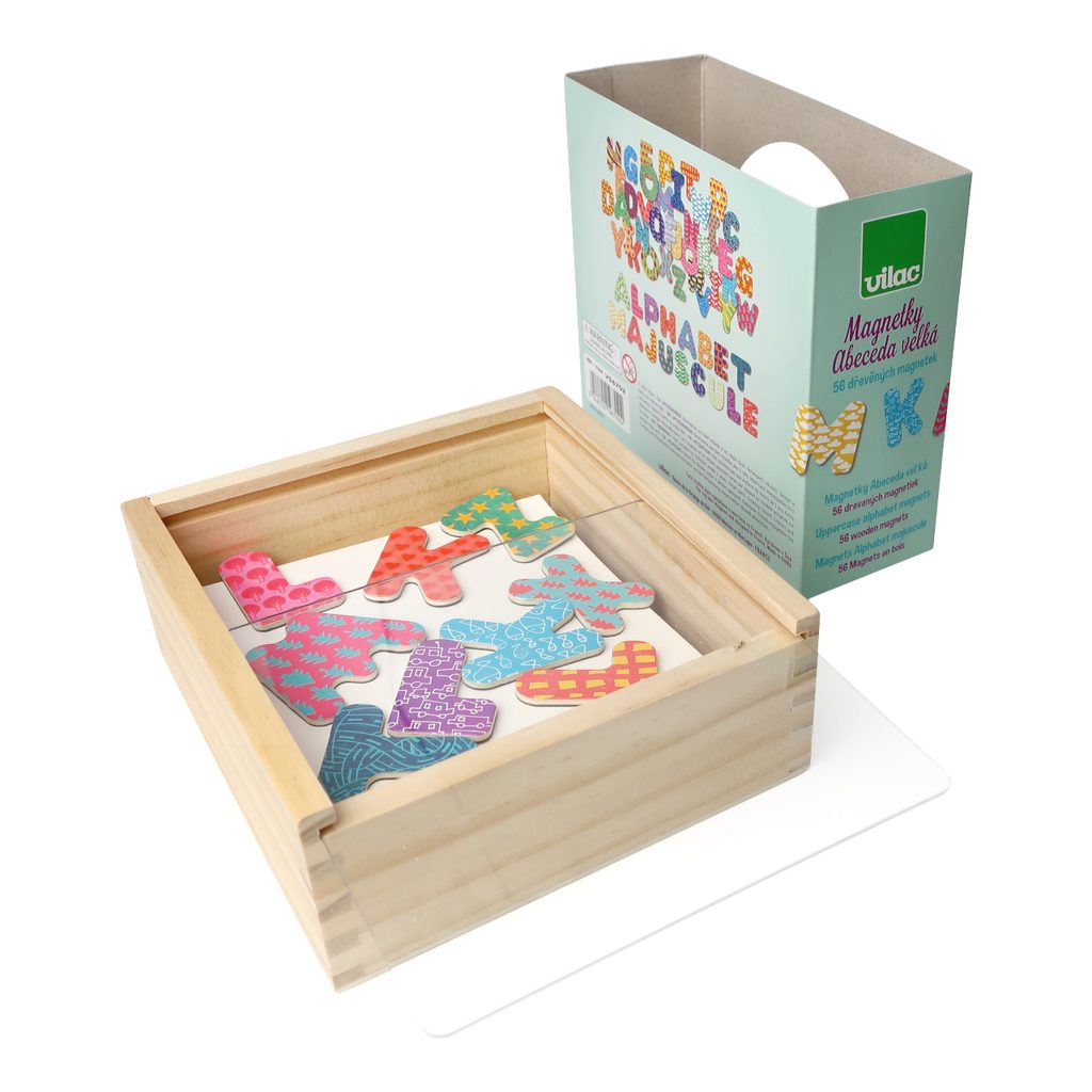 Magnetická, dřevěná písmena abecedy mohou děti naučit jejich první slova. Je možno si s nimi hrát na lednici nebo magnetické tabulce. Jsou zdobena pestrou paletou poutavých barev a jedinečných vzorů. Každé písmeno je tak ještě snadněji rozpoznatelné a motivuje k vytváření stále nových spojení. Hlavní vlastnosti: 56 ks magnetekjasné, výrazné barvy a nápadité vzoryvhodné jako dekorační prvek i didaktická pomůcka