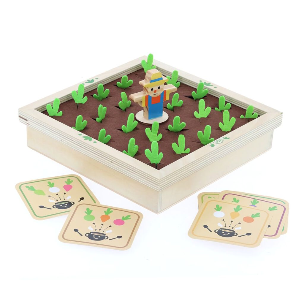 Uvařte si zeleninovou polévku plnou pestrých barev. Ale dejte pozor na bílého králíka, ukradne Vám ingredience! Hru můžete hrát jako jednoduché pexeso i s menšími dětmi, zpestřením jsou pak kartičky s recepty, díky kterým zábava získá další rozměr. Komu se dříve podaří zkompletovat recept a uvařit polévku? Zkusíte zkompletovat více receptů, nebo hru okořenit i bodovým ohodnocením jednotlivých druhů zeleniny? Součásti hry kombinují silnou překližku, masivní dřevo či plsť a jsou poutavě, tematicky dekorované. Hra má 2 varianty, Pexeso a Uvařme polévku. Hlavní vlastnosti: pro 2–6 hráčůhrací plocha, 24 herních dílků a 7 kartiček s recepty2 herní varianty, vhodné i pro menší dětijedinečné a atraktivní zpracování Dokumentace: Návod ke hře Sklízení zahrádky (CZ)Návod ke hře Sklízení zahrádky (SK)